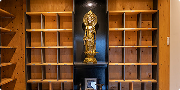 納骨堂お内仏様前にて毎月一回聖照寺僧侶の読経による供養をいただき、安心してご納骨いただけます。
