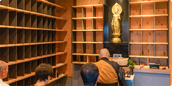納骨堂お内仏様前にて毎月一回聖照寺僧侶の読経による供養をいただき、安心してご納骨いただけます。
